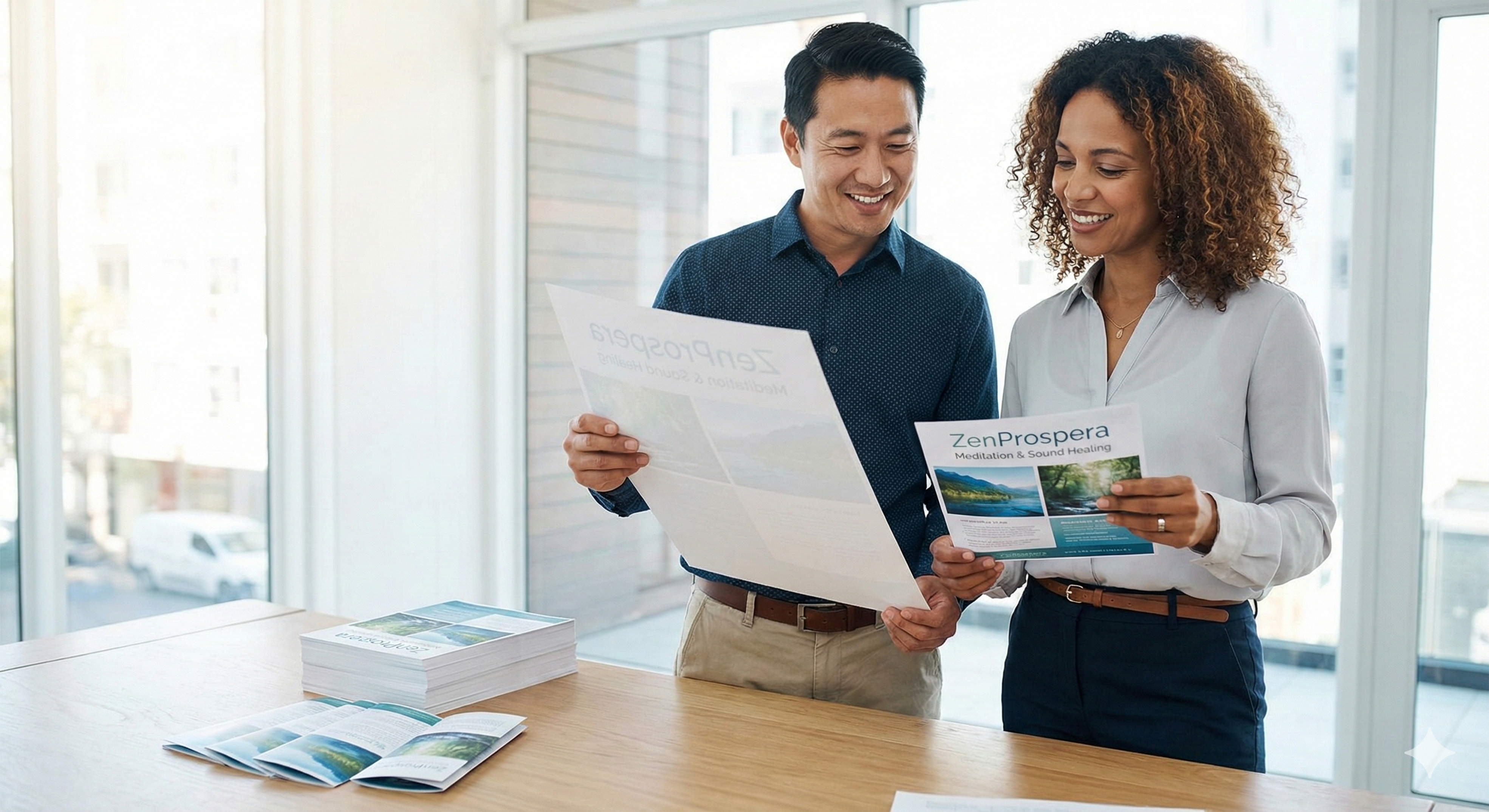 CircleUp's Print Design Studio is an in-house print & design service for mission-driven small businesses and and wellness practitioners who need brand-ready materials without the hassle of formatting, paper decisions, and finishing details. We focus on clean layout, print-ready files, and polished physical finishes so your materials show up looking intentional at events, in studios, and at retail counters.